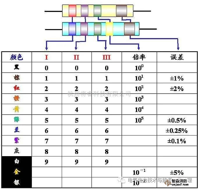 其余色環(huán)阻值環(huán),表示阻值有效數(shù)。色標(biāo)顏色代表數(shù),倍數(shù)十的次方值。棕紅橙黃綠藍(lán)紫,一二三四五六七,