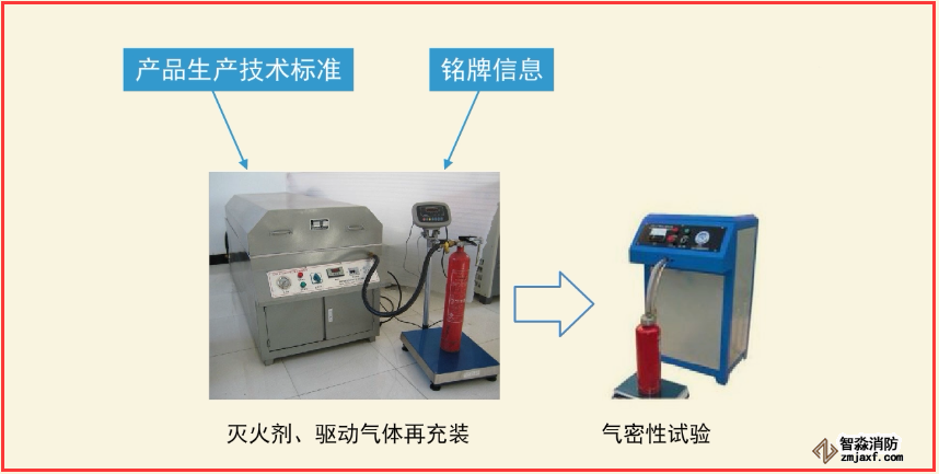 根據(jù)滅火器產(chǎn)品生產(chǎn)技術(shù)標(biāo)準(zhǔn)和銘牌信息,按照生產(chǎn)企業(yè)規(guī)定的操作要求,實(shí)施滅火劑、驅(qū)動(dòng)氣體再充裝。再充裝后,逐具進(jìn)行氣密性試驗(yàn);
