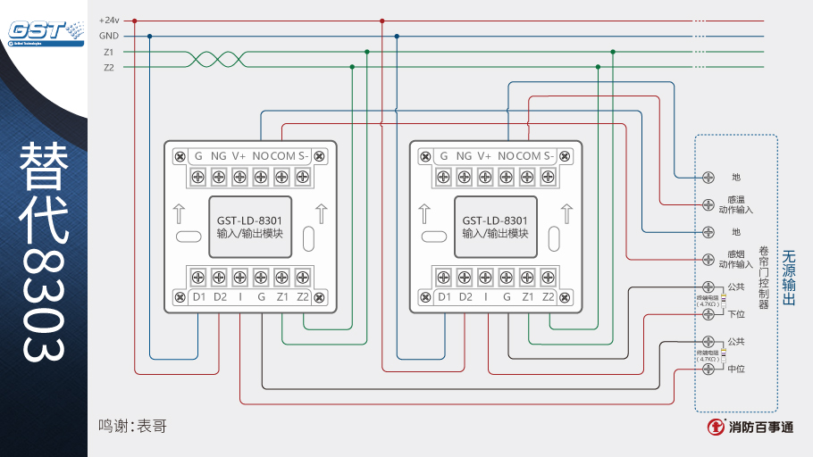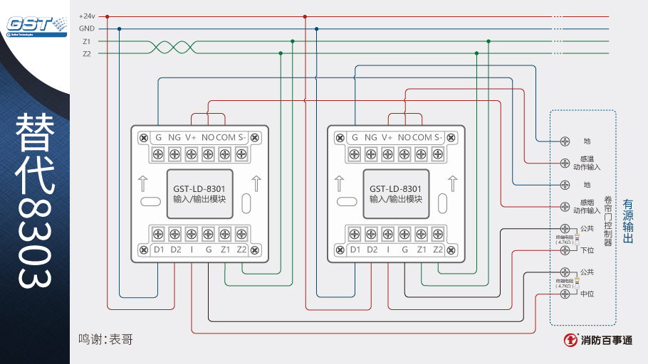1、海灣8301模塊可以替代海灣的8303模塊控制防火卷簾,兩個8301模塊相當(dāng)于1個8303模塊。