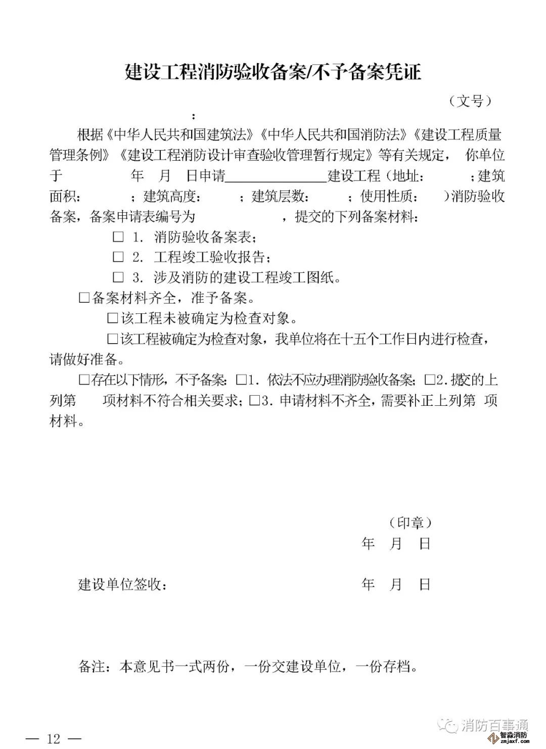 2.建設工程消防設計審查、消防驗收、備案和抽查文書式樣