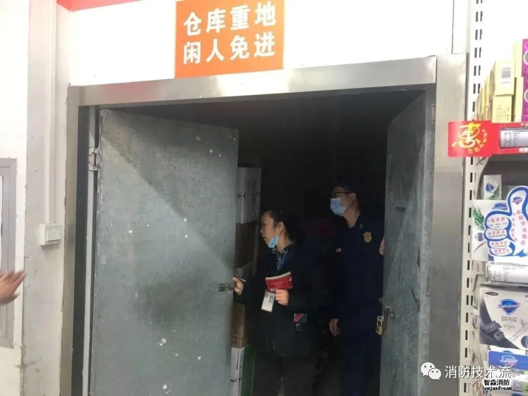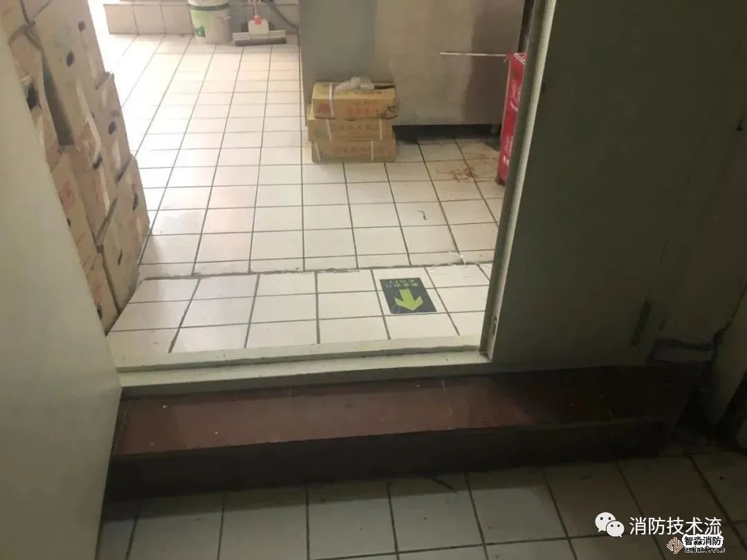 存在問題:1、疏散通道被貨物占用;2、南側(cè)疏散門外1.4m范圍內(nèi)設(shè)置踏步;3、倉庫未設(shè)置乙級防火門。