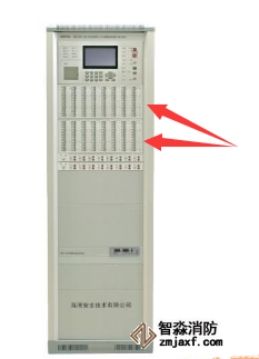 海灣消防H高能主機手動盤(也稱總線控制盤,如上圖箭頭處)每塊有128個單元,每一單元均有一個按鍵、兩個指示燈和一個標(biāo)簽。手動盤通常用來直接控制聲光、輸入輸出模塊等。