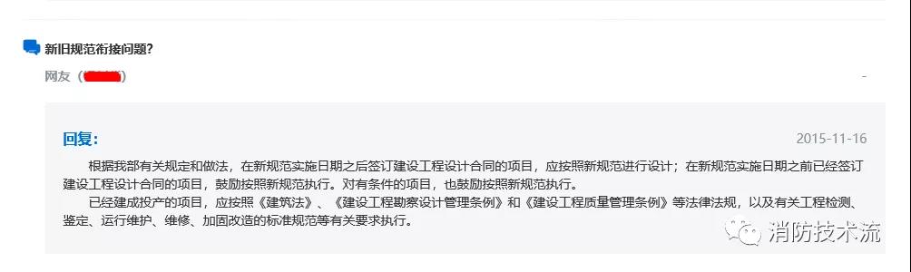 關(guān)于消防設(shè)計執(zhí)行新舊規(guī)范銜接問題的官方答復(fù)