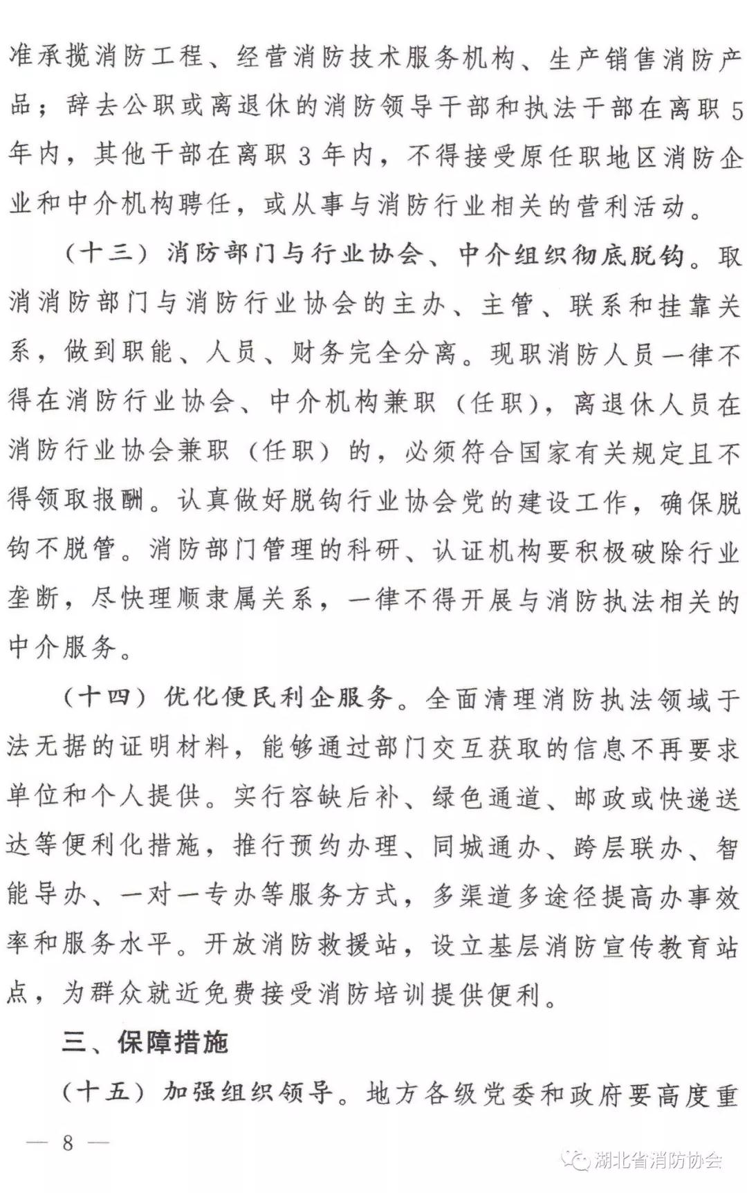 取消消防部門與消防行業(yè)協(xié)會的主辦、主管、聯(lián)系和掛靠關(guān)系,做到職能、人員、財務(wù)完全分離。