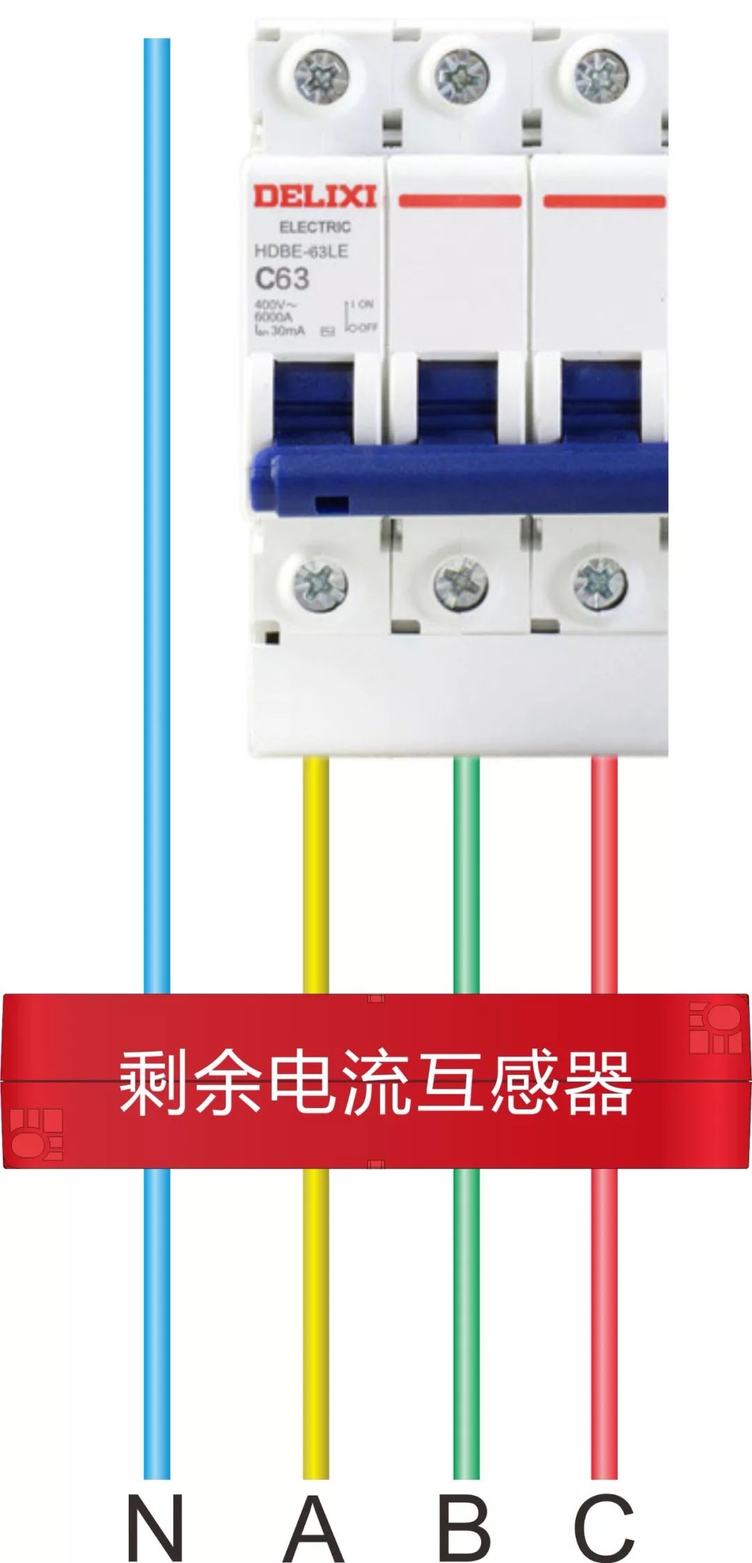 剩余電流,是指低壓配電線路中各相(含中性線)電流矢量和不為零的電流。通俗講當用電側發(fā)生了事故,電流從帶電體通過人體流到大地,使主電路進出線中的電流I相和I中的大小不相等(即火線和零線電流值不相等),此時電流的瞬時矢量合成有效值稱為剩余電流,俗稱漏電。