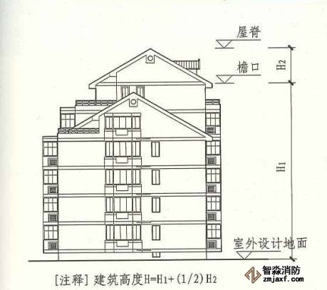 建筑屋面為坡屋面時,建筑高度應(yīng)為建筑室外設(shè)計地面至其檐口與屋脊的平均高度。