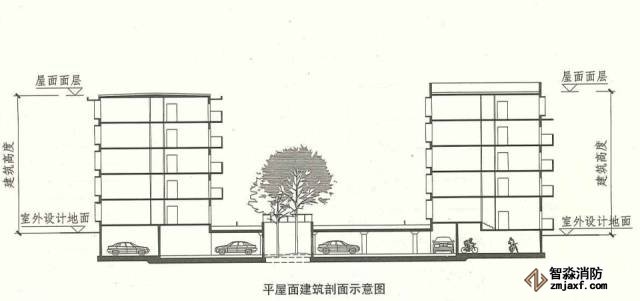 建筑屋面為平屋面(包括有女兒墻的平屋面)時,建筑高度應(yīng)為建筑室外設(shè)計地面至其屋面面層的高度。
