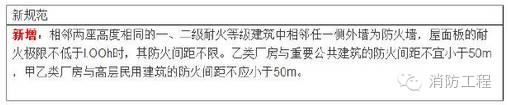 答案3:新規(guī)范5.2.2規(guī)定,兩座建筑相鄰較高一面外墻為防火墻,或高出相鄰較低一座一、二級耐火等圾建筑的屋面15m及以下范圍內(nèi)的外墻為防火墻時,其防火間距不限;相鄰兩座高度相同的一、二級耐火等級建筑中相鄰任一側(cè)外墻為防火墻,屋面板的耐火極限不低于1.OOh,其防火間距不限。