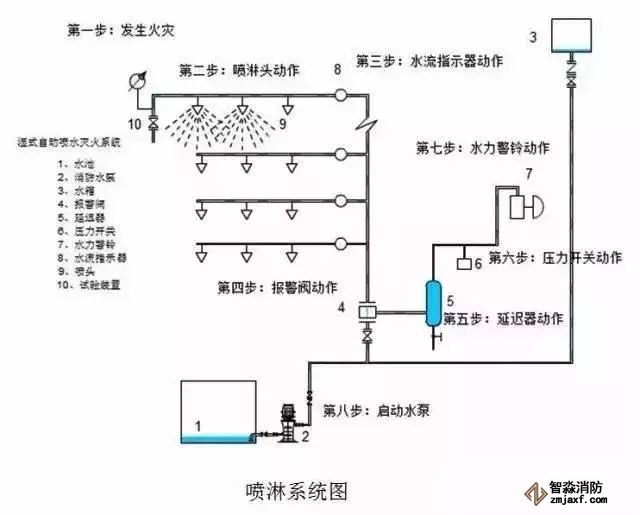2. 濕式報(bào)警閥與水流指示有些不同,如果噴淋管道中如果水在流動(dòng),管道原有的靜壓會(huì)發(fā)生變化,會(huì)激發(fā)水力警鈴報(bào)警(它的原理可以參看一些閥門(mén)說(shuō)明書(shū)),且壓力開(kāi)關(guān)動(dòng)作,從而來(lái)啟動(dòng)噴淋水泵。