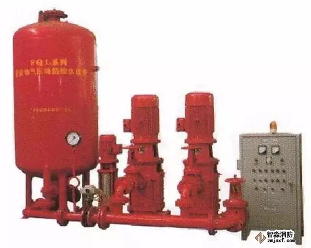 由鋼質(zhì)外殼,橡膠隔膜內(nèi)膽構(gòu)成的儲(chǔ)能器件,橡膠隔膜把水室和氣室完全隔開(kāi),當(dāng)外界有壓力的水充入隔膜式氣壓水罐的內(nèi)膽時(shí),密封在罐內(nèi)的空氣被壓縮,根據(jù)波義耳氣體定律,氣體受到壓縮后體積變小,壓力升高儲(chǔ)存能量,壓縮氣體膨脹可以將橡膠隔膜內(nèi)的水壓出罐體。