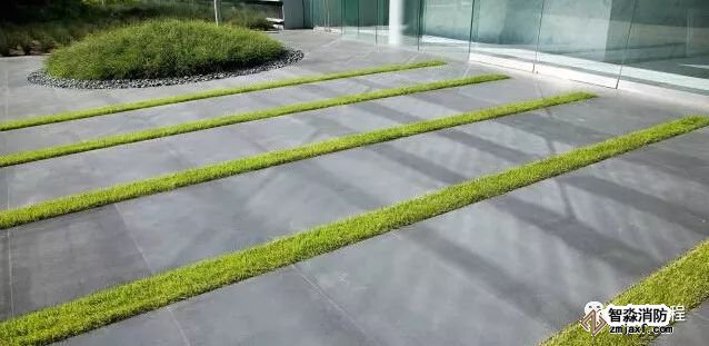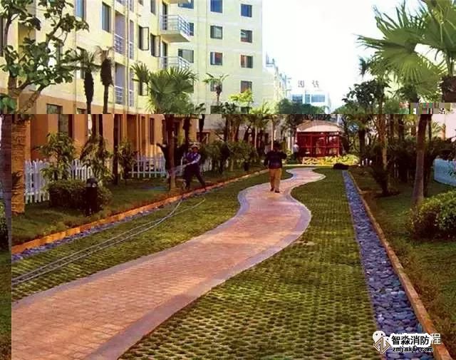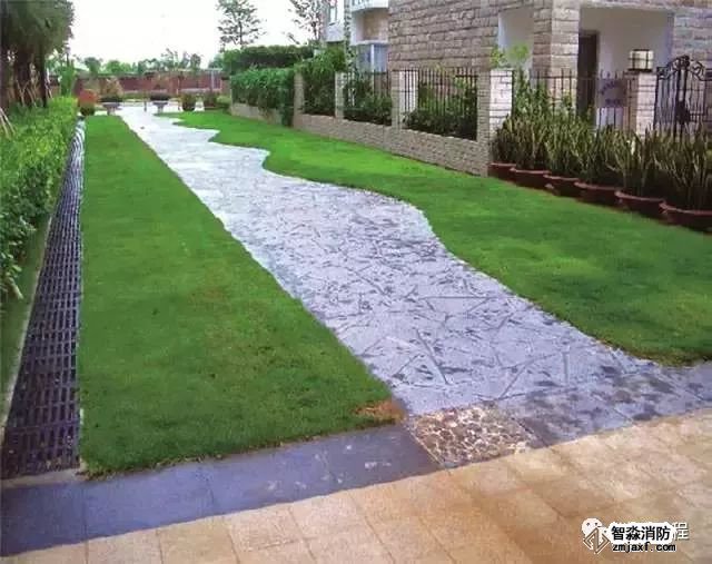 ▲隱蔽式車道,在4m幅寬的消防車道內(nèi)種植不妨礙消防車通過(guò)的草坪、花卉