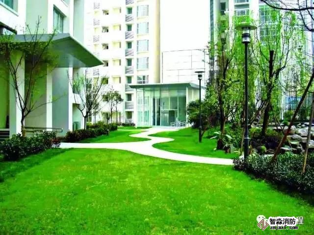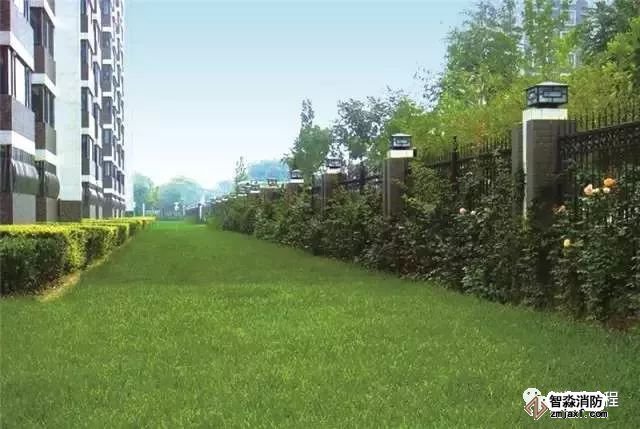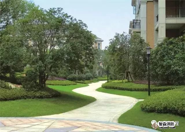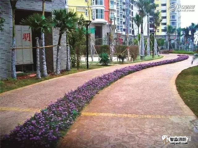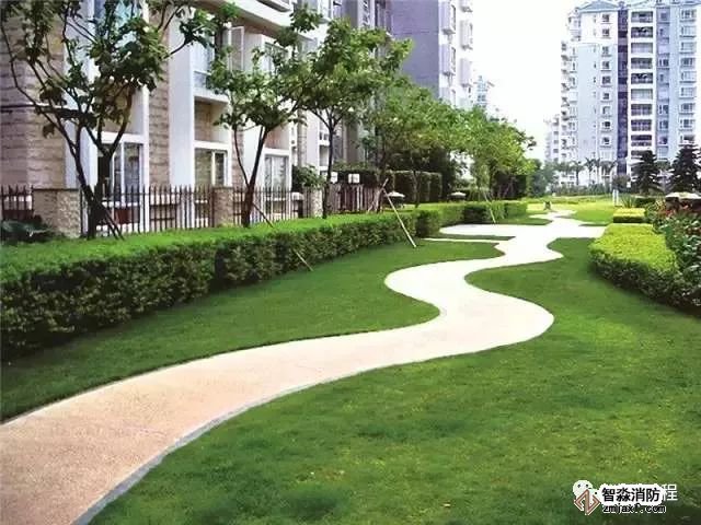 ▲在4m幅寬的消防車道內(nèi)種植不妨礙消防車通行的草坪、花卉