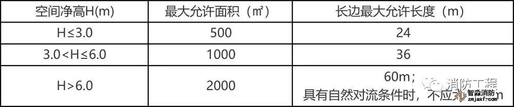 4. 公共建筑、工業(yè)建筑防煙分區(qū)的最大允許面積及其長(zhǎng)邊最大允許長(zhǎng)度應(yīng)符合下表的規(guī)定,當(dāng)工業(yè)建筑采用自然排煙系統(tǒng)時(shí),其防煙分區(qū)的長(zhǎng)邊長(zhǎng)度尚不應(yīng)大于建筑內(nèi)空間凈高的8倍。