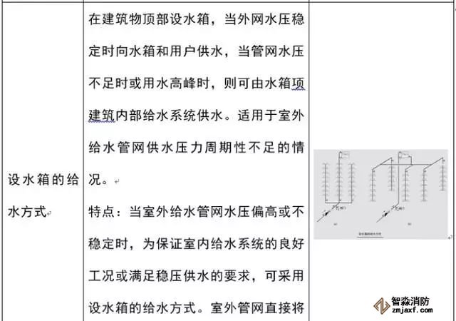 在管網(wǎng)頂部設(shè)有水箱,管網(wǎng)與大氣相通,系統(tǒng)內(nèi)部的水壓僅取決于水箱的設(shè)置高度,不受室外給水管網(wǎng)水壓波動(dòng)影響。