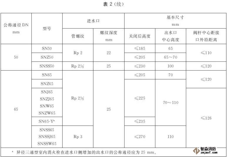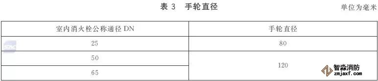室內(nèi)消火栓的進(jìn)水口應(yīng)為圓柱管螺紋,其進(jìn)水口的螺紋尺寸應(yīng)符合表3的規(guī)定;閥桿與閥桿螺母應(yīng)為梯形螺紋。