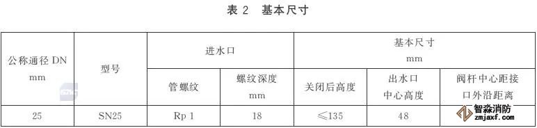 室內(nèi)消火栓的基本尺寸應(yīng)符合表2的規(guī)定。尺寸公差應(yīng)符合GB/T 1804—2000中V級(jí)的規(guī)定。