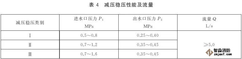 減壓穩(wěn)壓型室內(nèi)消火栓按6.13.2的規(guī)定進(jìn)行試驗(yàn),其穩(wěn)壓性能及流量應(yīng)符合表4的規(guī)定,且在試驗(yàn)的升壓及降壓過(guò)程中不應(yīng)出現(xiàn)壓力震蕩現(xiàn)象。