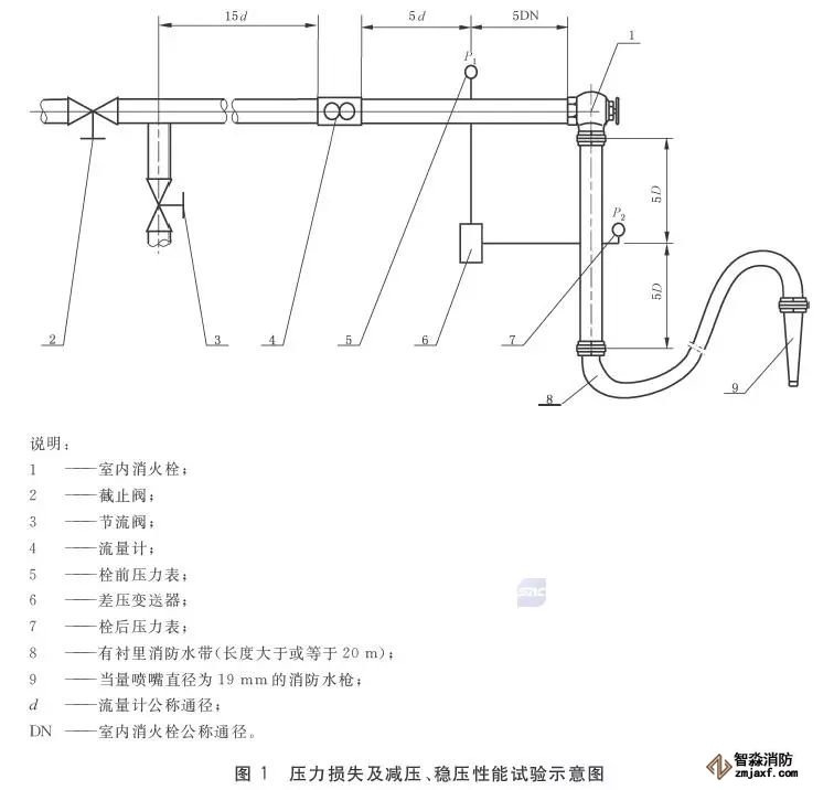 減壓型室內(nèi)消火栓按6.13.1的規(guī)定進(jìn)行試驗(yàn),其進(jìn)、出口的壓力值應(yīng)由生產(chǎn)單位提供,出水口壓力的允差應(yīng)為±0.02 MPa,且流量應(yīng)大于5.0 L/s。