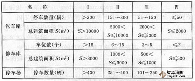 汽車庫、修車庫、停車場根據(jù)不同特點(diǎn),分為多種類型,汽車庫、修車庫、停車場的分類應(yīng)根據(jù)停車(車位)數(shù)量和總建筑面積來確定,具體應(yīng)符合下表規(guī)定: