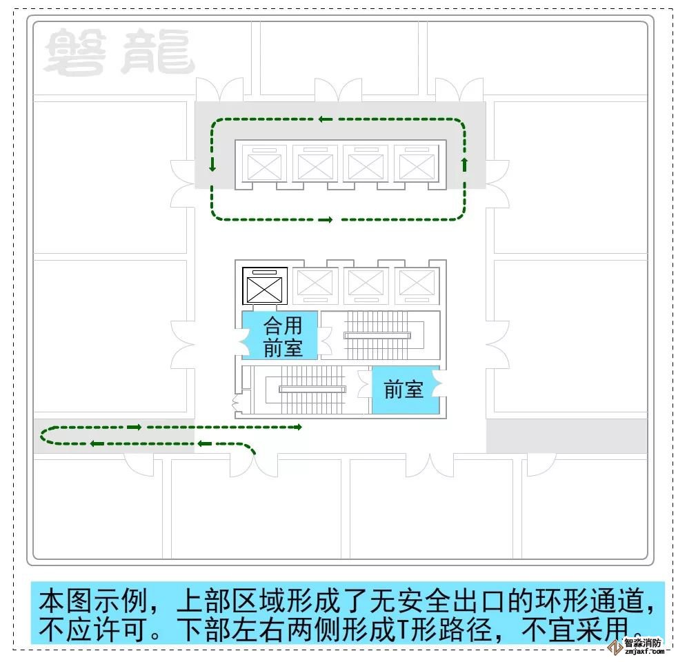 T形走道和回形(環(huán)形)走道,是消防安全疏散設(shè)計(jì)中不可回避的問題,本文闡述基本原則及相關(guān)要求: