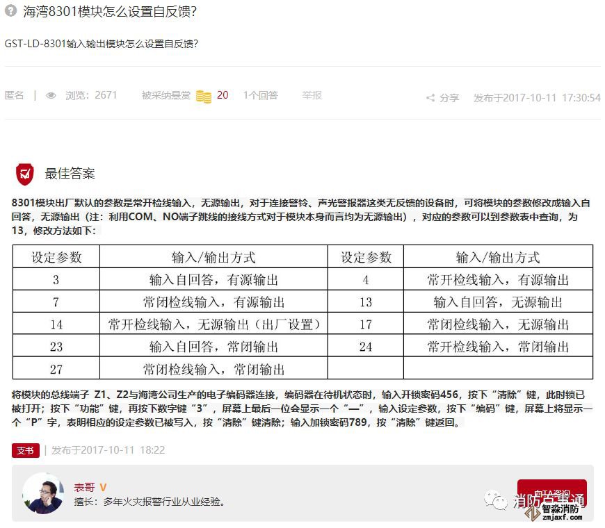 GST-LD-8301輸入/輸出模塊出廠默認的參數(shù)是常開檢線輸入,無源輸出,對于連接警鈴、聲光警報器這類無反饋的設(shè)備時,可將模塊的參數(shù)修改成輸入自回答,無源輸出(注:利用COM、NO端子跳線的接線方式對于模塊本身而言均為無源輸出),對應(yīng)的參數(shù)可以到參數(shù)表中查詢,為13,修改方法如下: