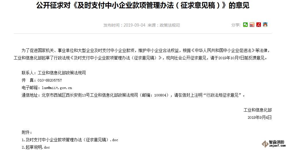2019年9月,工信部發(fā)布《及時支付中小企業(yè)款項(xiàng)管理辦法(征求意見稿)》,提出: