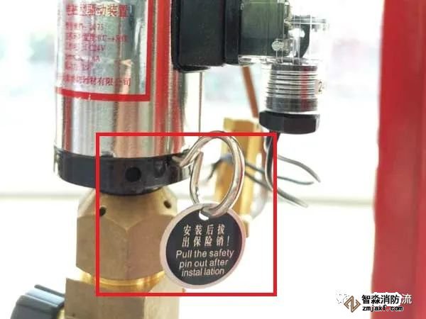 在氣體滅火系統(tǒng)調(diào)試驗(yàn)收合格,正式投入使用后,電磁閥保險(xiǎn)銷應(yīng)拔除,否則將影響系統(tǒng)的自動(dòng)啟動(dòng)噴放。出廠時(shí)此保險(xiǎn)銷也有標(biāo)明“安裝后拔出保險(xiǎn)銷”的提示。