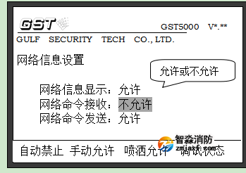2 網(wǎng)絡(luò)信息顯示-不允許:控制器不接收不顯示網(wǎng)絡(luò)上傳來(lái)的火警、故障、恢復(fù)、延時(shí)、自檢等網(wǎng)絡(luò)信息