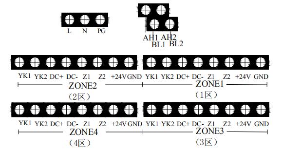 +24V、GND:各區(qū)的輔助電源輸出端子,為現(xiàn)場(chǎng)的系統(tǒng)設(shè)備如聲光警報(bào)器、氣體噴灑指示燈和輸出模塊供電。