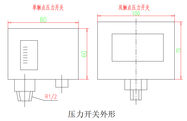 3)壓力可調(diào)范圍:0.025~0.125MPa,本壓力開(kāi)關(guān)一般調(diào)為0.05MPa