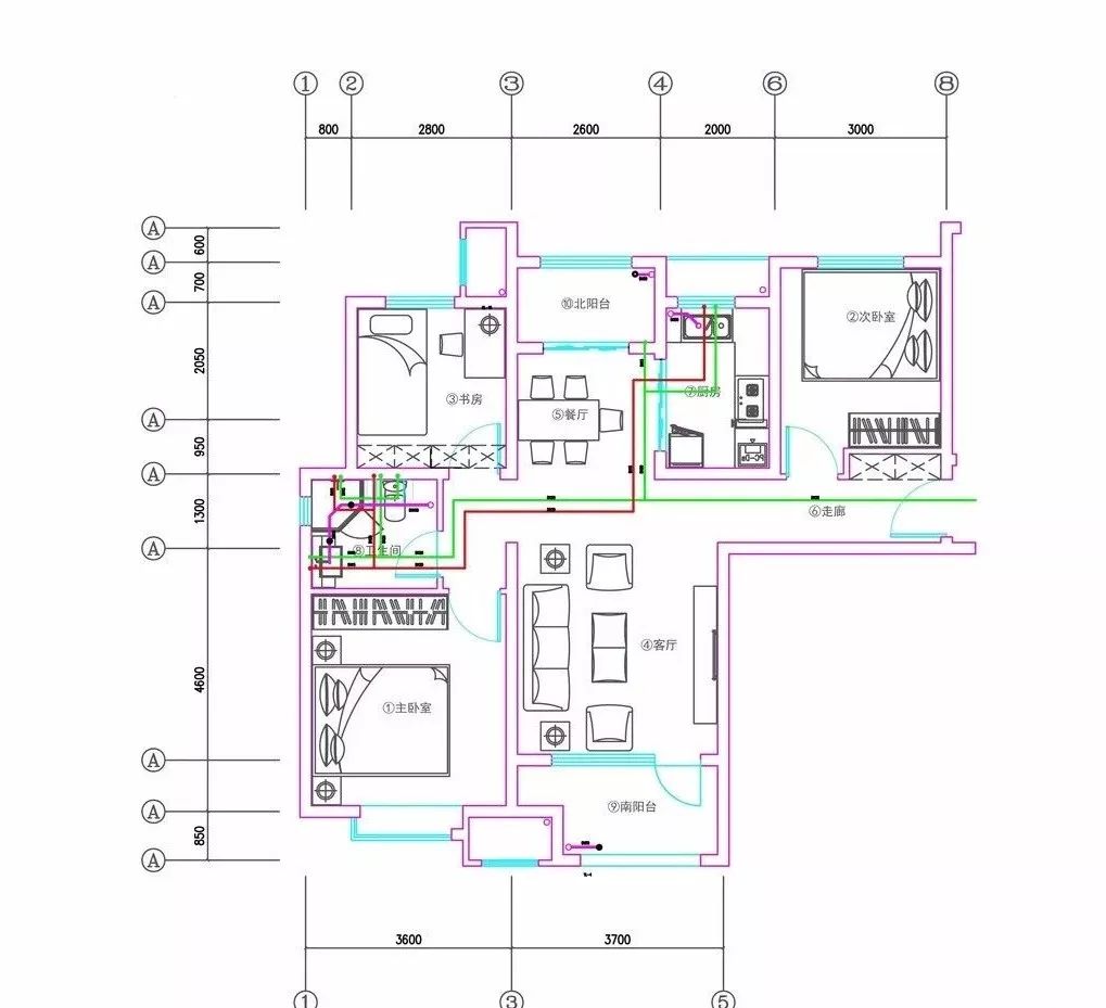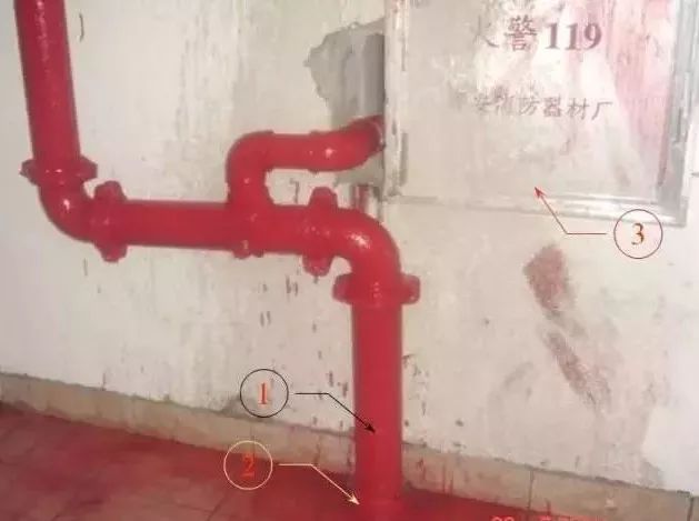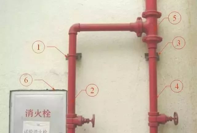 ⑤⑥⑦油漆分色美觀,消防管使用紅色,排污管使用黑色,支吊架使用灰色,且互不污染,但應(yīng)增加管道的標(biāo)色。