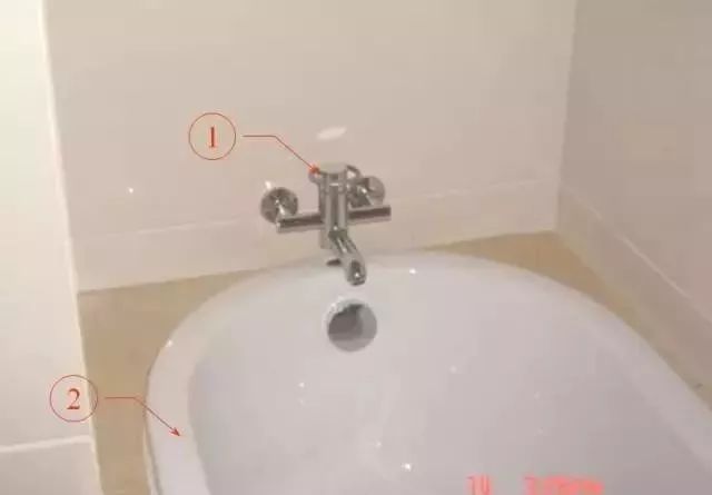 ①浴缸龍頭出水口離墻角380mm,高度580mm,允許偏差±5mm。