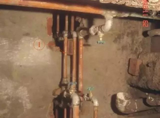 ②過(guò)樓板套管與套管偏心且外露過(guò)長(zhǎng)(應(yīng)為20mm)套管與管道間隙充填無(wú)工藝性。(應(yīng)填充麻絲后在套管頂?shù)撞考s20~30mm處填充水泥,并呈45度收口)