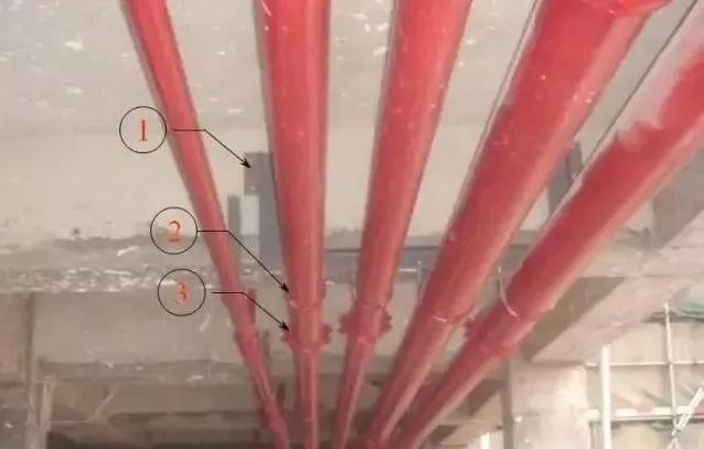 ②③④在管道轉(zhuǎn)彎處,三通處安裝支吊架,位置準(zhǔn)確合理。