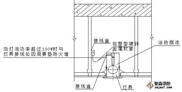 十一、吊頂內(nèi)接線盒到燈具金屬軟管的施工細(xì)部做法: