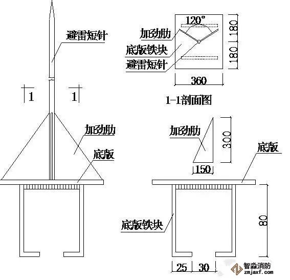 ⑴避雷針的高度一般為400mm或500mm。