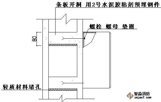 ⑷搭接板應(yīng)預(yù)埋,其與窗框或門框可螺栓連接或焊接。