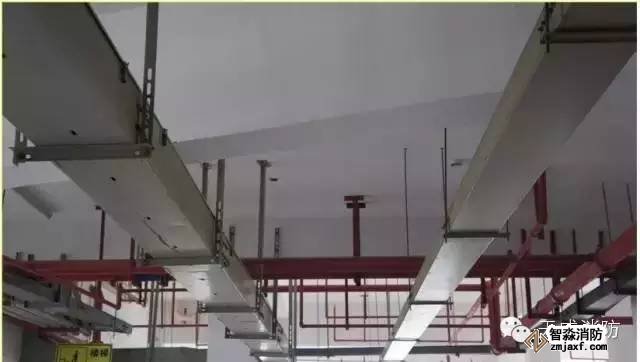 地下室各種管道敷設(shè)層次分明,各種管支架獨設(shè)且固定間距基本滿足