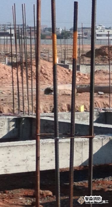 利用結(jié)構(gòu)柱內(nèi)主筋作引下線時,每條引下線不得少于兩根主筋,每根主筋直徑不能小于Ф16㎜,防雷引下線位置最好對稱.引下線間距:一級防雷建筑:≤18m;二級防雷建筑:≤20m;三級防雷建筑:≤25m。按設(shè)計要求找出全部主筋位置,用油漆做好標記,距室外地面0.5m處焊接斷接卡子,隨鋼筋逐層串聯(lián)焊接至頂層,并焊接出屋面一定長度的引下線Ф12㎜的鍍鋅圓鋼,以備與避雷帶連接。柱內(nèi)引下線與梁內(nèi)均壓環(huán)可靠焊接,采用雙面焊接,焊縫雙面焊接長度大于6D,下端與建筑物樁基鋼筋及基礎(chǔ)底梁鋼筋的兩根主筋焊接。每層各引下點焊接后,隱蔽之前,均應(yīng)請現(xiàn)場施工員及監(jiān)理進行隱檢,同時應(yīng)填寫隱檢記錄。