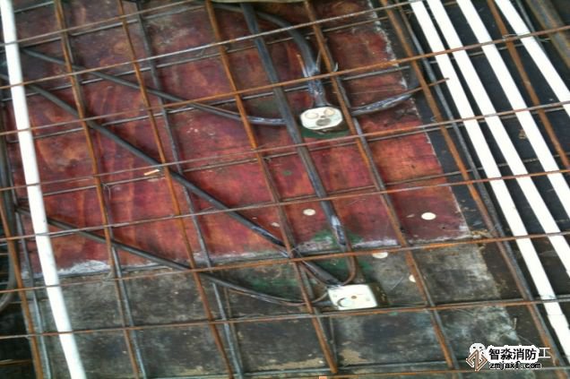 管線與底筋用鐵絲綁扎牢固,避免線管移位損壞,PVC管路固定點的間距為不大于1m,距端頭、彎曲中點不大于500mm。