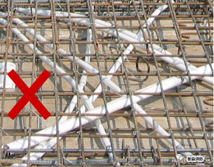 局部電線管太密集,部分線管間距少于15mm,線管重疊超過三層,影響樓板結(jié)構(gòu)。