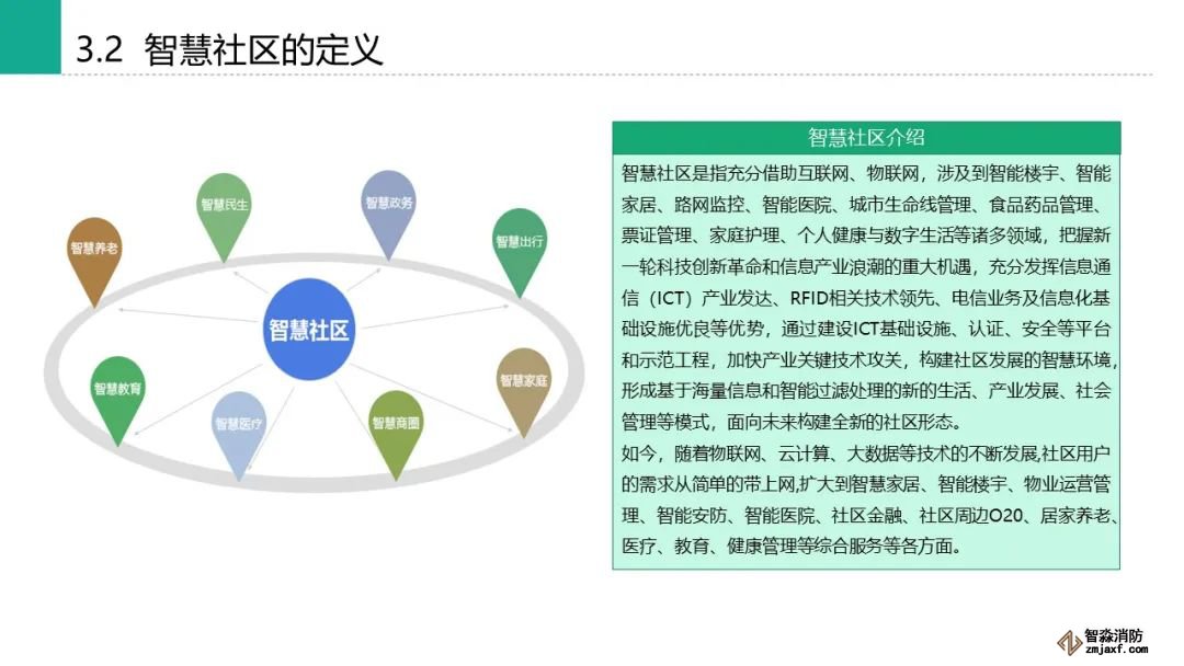 智慧社區(qū)是指充分借助互聯(lián)網(wǎng)、物聯(lián)網(wǎng),涉及到智能樓宇、智能家居、路網(wǎng)監(jiān)控、智能醫(yī)院、城市生命線管理、食品藥品管理、票證管理、家庭護(hù)理、個(gè)人健康與數(shù)字生活等諸多領(lǐng)域,把握新一輪科技創(chuàng)新革命和信息產(chǎn)業(yè)浪潮的重大機(jī)遇,充分發(fā)揮信息通信(ICT)產(chǎn)業(yè)發(fā)達(dá)、RFID相關(guān)技術(shù)領(lǐng)先、電信業(yè)務(wù)及信息化基礎(chǔ)設(shè)施優(yōu)良等優(yōu)勢,通過建設(shè)ICT基礎(chǔ)設(shè)施、認(rèn)證、安全等平臺和示范工程,加快產(chǎn)業(yè)關(guān)鍵技術(shù)攻關(guān),構(gòu)建社區(qū)發(fā)展的智慧環(huán)境,形成基于海量信息和智能過濾處理的新的生活、產(chǎn)業(yè)發(fā)展、社會管理等模式,面向未來構(gòu)建全新的社區(qū)形態(tài)。