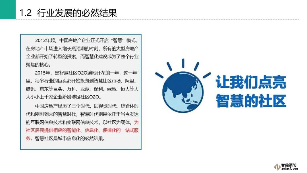 大家好,我是海灣消防。中國房地產(chǎn)經(jīng)歷了三個(gè)時(shí)代,即視覺時(shí)代、綜合體時(shí)代和剛剛到來的智慧時(shí)代,智慧時(shí)代則是依托于當(dāng)今發(fā)達(dá)的互聯(lián)網(wǎng)信息技術(shù)和物聯(lián)網(wǎng)信息技術(shù),以社區(qū)為載體,為社區(qū)居民提供相應(yīng)的智能化、信息化、便捷化的一站式服務(wù)。智慧社區(qū)是城市信息化的必然結(jié)果。