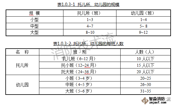 由此可知,幼兒園規(guī)模由班級數量確定,結合表格可以得出設置5個及以上班級的幼兒園應設置火災自動報警系統(tǒng)及自動噴水滅火系統(tǒng)。