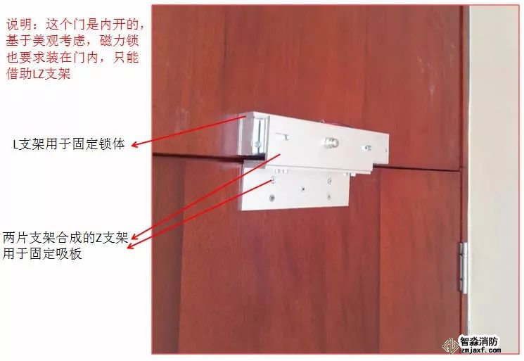 當(dāng)門框不夠?qū)挄r,借助L支架拓展門框?qū)挾?,讓磁力鎖得以“掛起來”